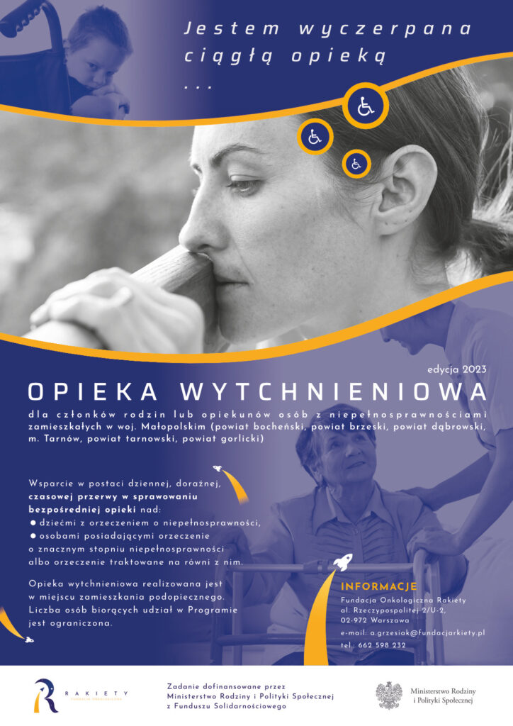 The Rakiety Oncological Foundation is recruiting for the "Respite care for family members or guardians of people with disabilities" program - 2023 edition as part of the Ministry of Family and Social Policy Program financed by the Solidarity Fund.