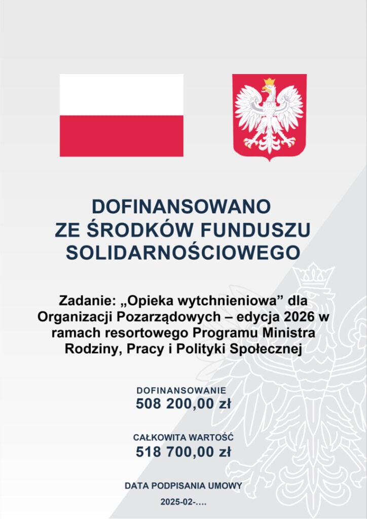 Fundacja Onkologiczna Rakiety rozpoczyna przyjmowanie zgłoszeń do programu „Opieka wytchnieniowa” dla Organizacji Pozarządowych – edycja 2026 w ramach resortowego Programu Ministra Rodziny i Polityki Społecznej finansowanego z Funduszu Solidarnościowego.